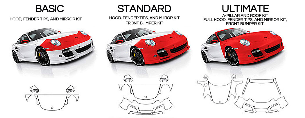 - Ultimate Plus: (Full Hood & Fenders, Front Bumper, A-Pillar & Roof Edge)